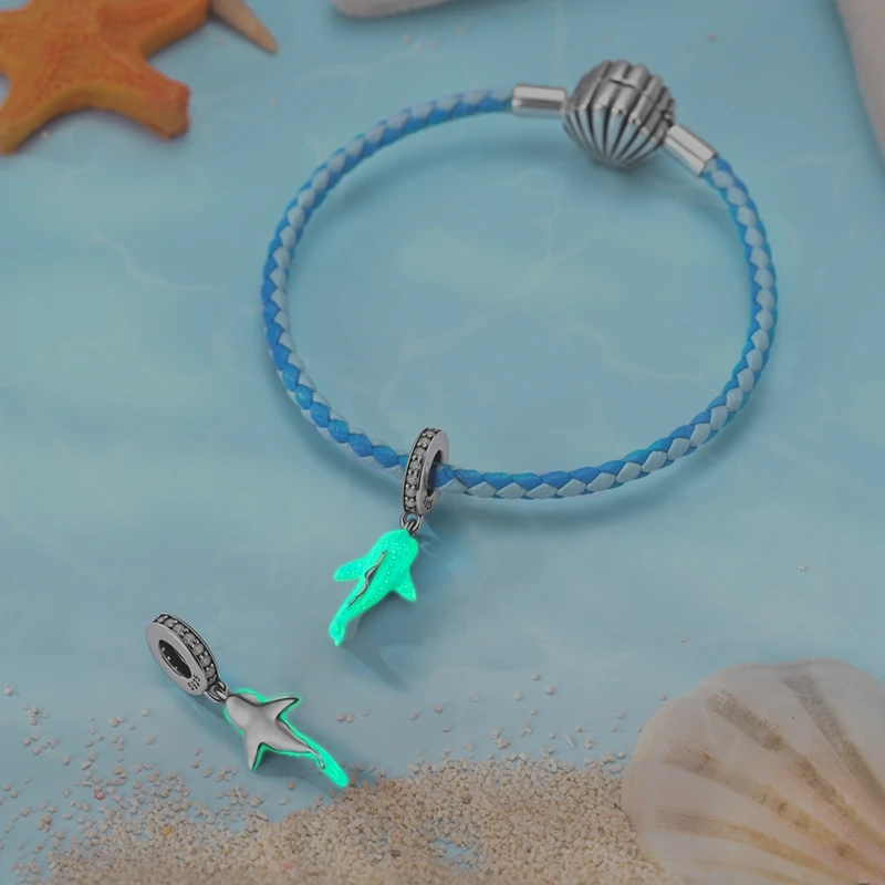 Fit original 925 prata esterlina encantos contas azul luminosa baleia tubarão ca